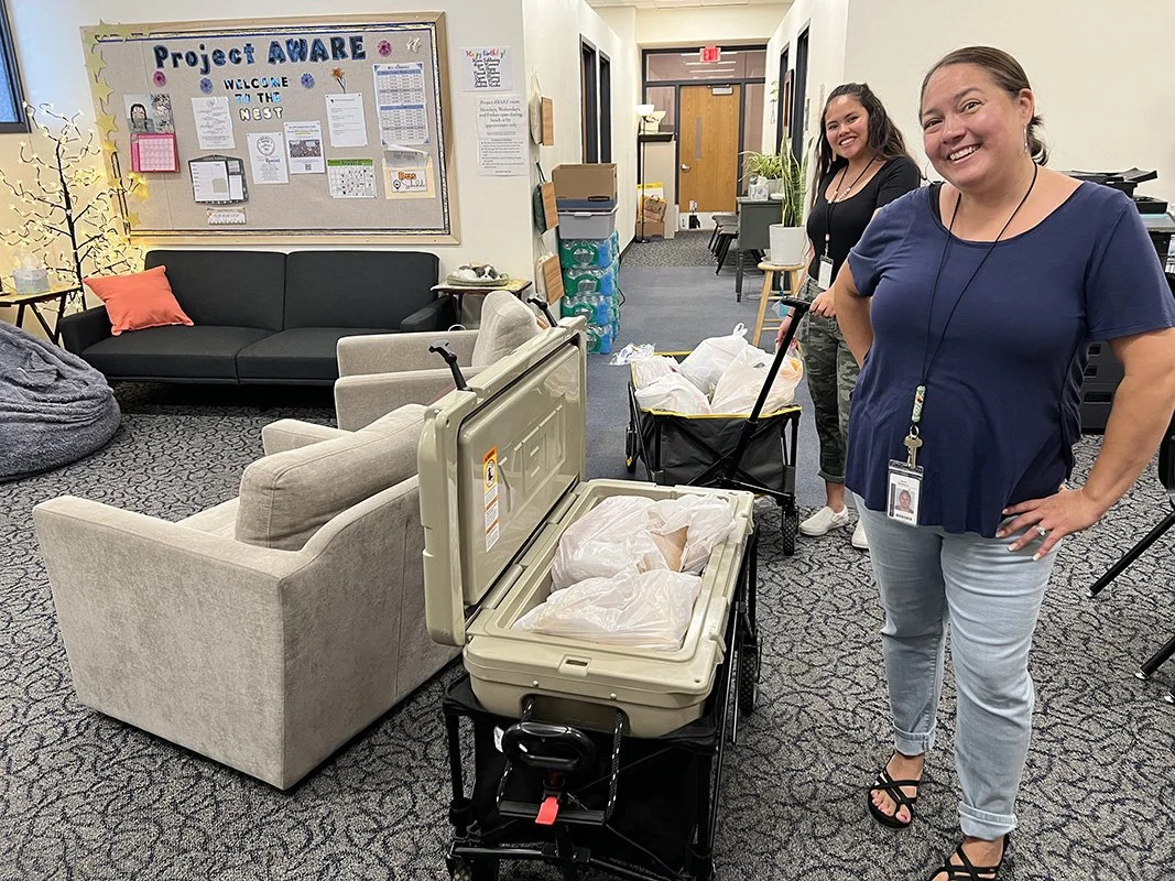 We have created a designated safe space within these schools, which we like to call the “nest,” staffed by our team of case managers and licensed therapists. We provide holistic support, individual, group, and art therapy. The “nest” is designed as a resource students can use as a retreat throughout the day and for extracurricular needs, academic support, snacks, art supplies, and community activities. Our team has also built a centralized food pantry located at Santa Fe High that serves both sites to support our students and their families further.
